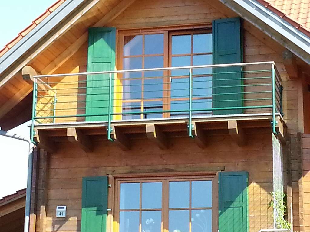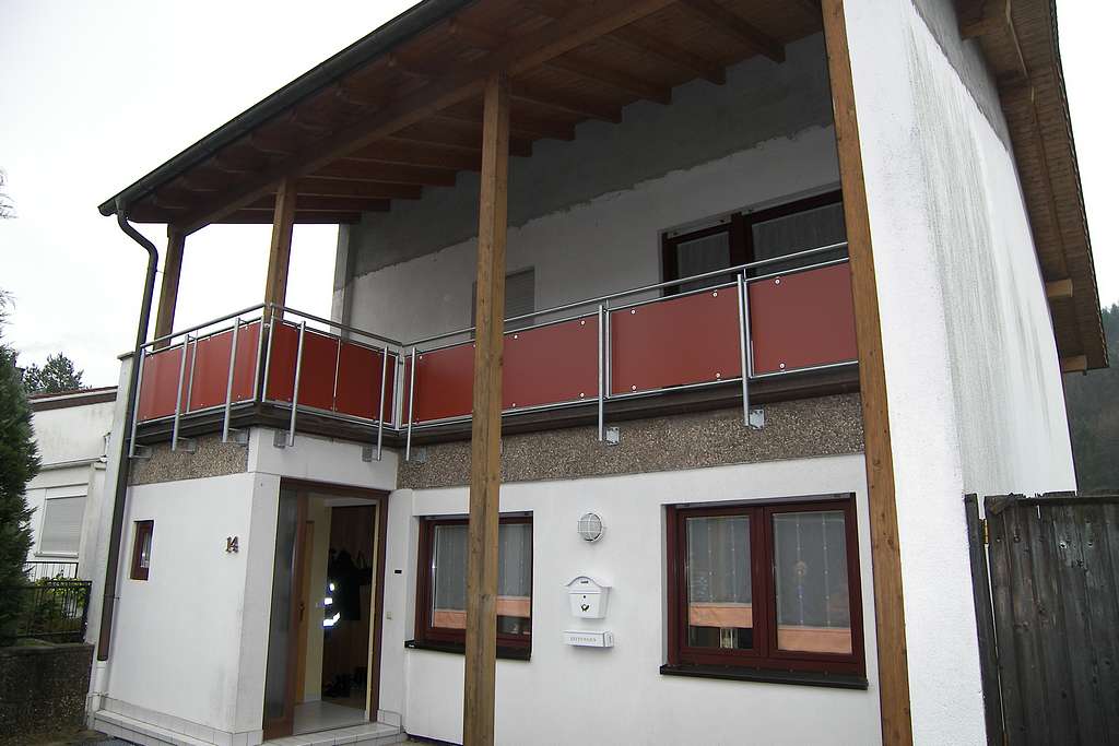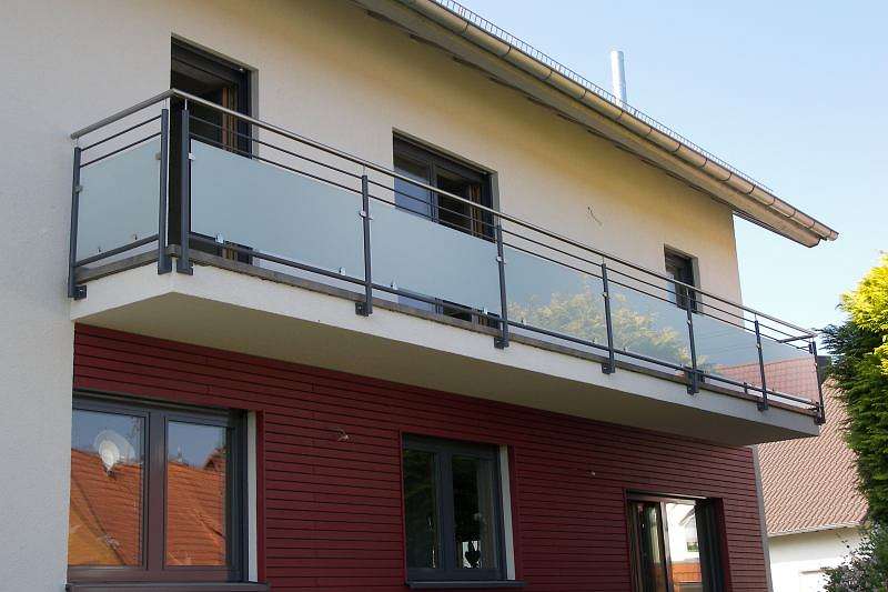 verzinkt lackiert mit Stäben und Glasfüllung mit Edelstahl Handlauf